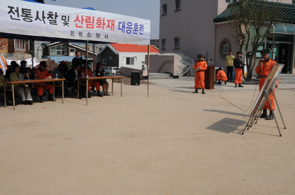 은평구청을 비롯한 경찰서, 군부대, 시민119산악구조대, 의용소방대 등 198명의 인원과 21대의 장비가 동원된 이날 훈련은, 숭례문 화재사고 1주년을 기하여 소중한 우리 문화유산을 화마로부터 안전하게 지키고, 산불 발생을 대비하여 유관기관 공조체제 확립 및 신속한 초동진화체계를 구축하여 대형 산불로의 확산을 방지하고 효율적인 초기진화로 귀중한 산림자원을 보호하여 시민생활에 안정을 기하고자 실시하였다.