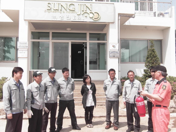 | ▶ 소화기 사용법 교육중 받는 직원들 © 송윤주 객원기자 ◀ | | 포항북부소방서(서장 최이주) 흥해119안전센터(센터장 우병옥)는 26일 성진 e&i(흥해읍 금장리)공장을 방문하여 소방안전교육을 실시하였다. 이날 교육에서는 화재시 대처요령 및 화재예방에 대한 기본지식, 소화기 사용요령, 자동화재탐지설비 작동법 등에 대한 교육이 이루어졌다. 교육에 참가한 직원은 "오늘 교육을 통해 조금만 관심을 가지고 일하면 안전한 직장을 만들 수 있다는 생각이 들었다"고 말했다. 송윤주 객원기자 ssong77@korea.kr