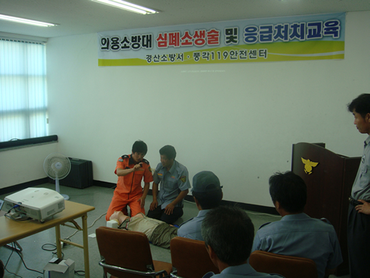 경산소방서(서장 이태근)는 '범국민 심폐소생술 확산운동'의 일환으로 의용소방대원들을 대상으로 심폐소생술 교육을 연차적으로 실시하고 있다. 따라서, 지난 18일과 19일 양일간 청도 이서의용소방대원 및 풍각의용소방대원 50여명을 대상으로 심폐소생술 교육을 실시,cpr적용 가능 사례 및 절차 등을 교육하고 심폐소생술마네킨을 이용, 직접 체험토록 했다. 소방서 관계자는“의용소방대원들이 각종 사고나 응급상황 시 즉각적으로 대응할 수 있는 능력을 점진적으로 향상시킬 방침으로, 의용소방대 분기별 교육훈련 시 심폐소생술 교육을 꾸준히 실시하겠다“고 말했다. 이화순 객원기자 lhs2131@gb.go.kr