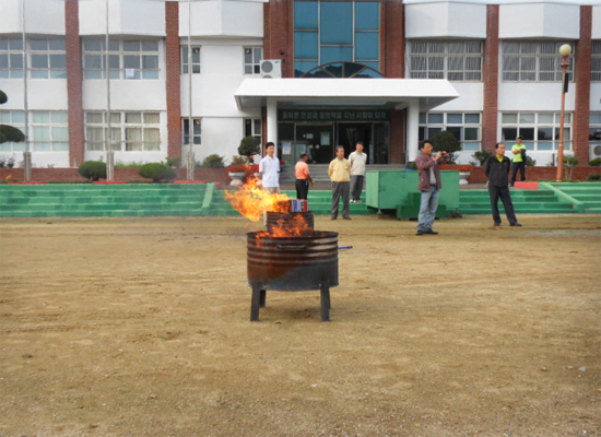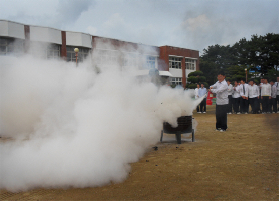 이번 훈련은 소방차량 2대, 강구센터 직원 4명, 학교 직원 및 학생 60여명이 참가했으며, 가상화재 설정 초기진압 및 인명대피 훈련, 응급환자 처치 요령, 소화기 사용법, 소방안전 교육 등을 실시하여 화재에 대한 경각심을 고취하고, 훈련을 통한 여러 가지 상황에 대한 대처요령을 숙달하여 피해를 최소화 하는데 학생 스스로 인식하는 계기가 되었다.