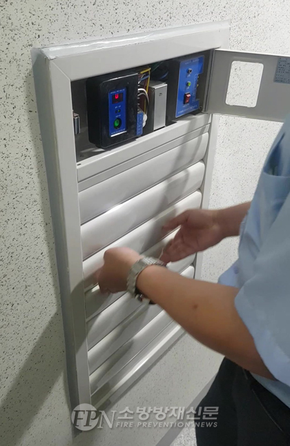 ![]() ▲ 전실 내부에 설치돼 있는 자동차압ㆍ과압조절형 댐퍼 © 최영 기자 |