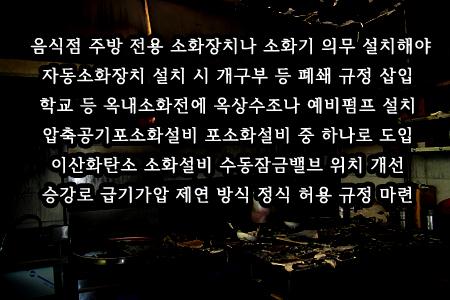 또 음식점 주방 등에 설치하도록 한 자동확산소화기의 설치 규정을 없애고 보일러실, 건조실, 세탁소, 변전소 등에만 설치하도록 개선했다.