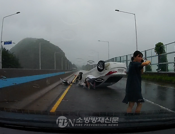 이날 전복된 사고 차량에 타고 있던 여성(32) 1명과 소아(6) 1명은 차량 유리창을 통해 구조됐다. 부부소방관의 신속한 구조로 큰 상처 없이 병원에서 치료를 받고 있다.