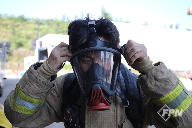 오전에는 이론, 오후에는 실습수업으로 구성됐습니다. 실습수업에서는 홍콩소방관이 사용하는 MSA사의 공기호흡기 세트와 특수방화복과 헬멧을 착용합니다. 실습 전ㆍ후 브리핑을 하고 교육장에서 ColdㆍWarmㆍHot Zone을 지정해 운영했습니다.