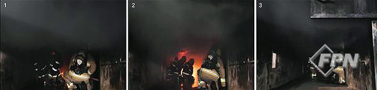 이후 첫 번째 화재에서 조별로 화재실 내부에 진입해 Short Attack([사진 10] 참조)을 연습했습니다. [사진 11]처럼 화재실 측면에서 Door entry를 한 후 내부로 진입해 화재진압 훈련을 했습니다.