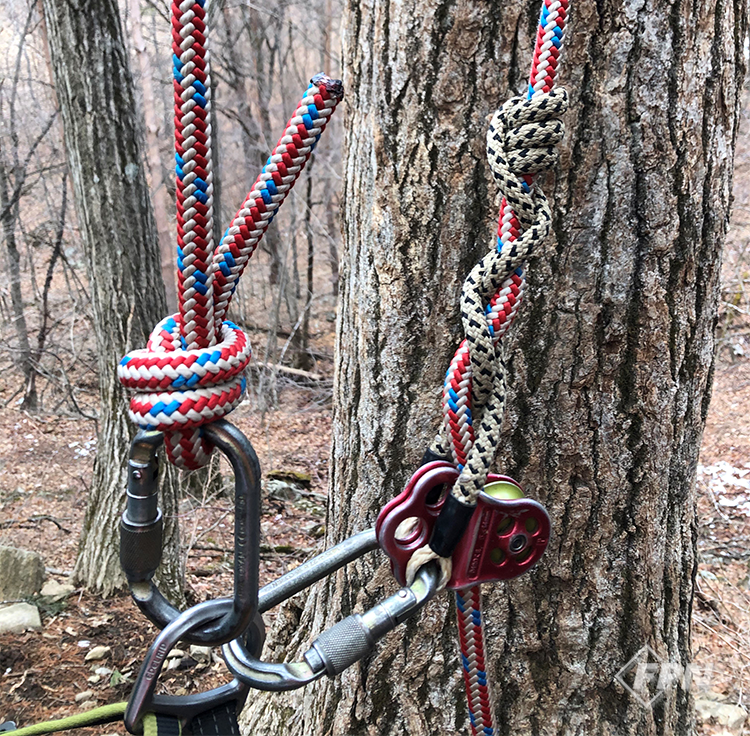 스필드 테일에 소형 도르래를 결합해서 사용한다면 위가 넓은 카라비너를 사용해 충분한 공간을 확보해야 할 필요가 있다.