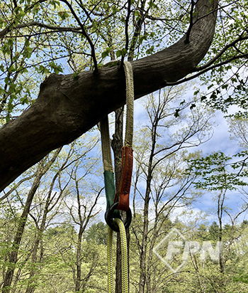 5. 로프 스프레드 방지하기 등반자가 지정된 위치(Tie-in point)로 나아갈수록 로프에 걸린 가지가 클라이밍 라인을 펴지게 할 것이다. 결과적으로 프릭션 히치도 풀려 매듭이 실패하기 쉽다. 이를 방지하기 위한 ‘5:1 규칙’이 있다. 만약 약 15㎝가 넘는 가지에 로프가 두 겹이 되면 클라이밍 히치는 75㎝ 정도 떨어지도록 유지해라. 이를 방지하기 위한 수단으로 ‘프릭션 세이버(Friction Saver)’를 이용한다. 그렇게 되면 등반 시 로프로 인해 나무의 형성층이 벗겨지는 걸 막을 수 있다.