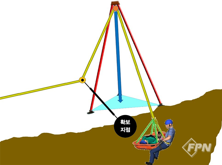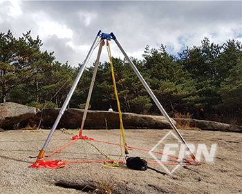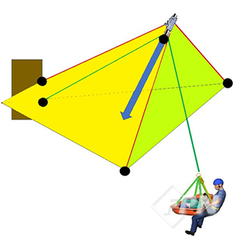 휴대용 높은 방향 지점 1. 삼각대 삼각대는 가장 일반적으로 사용하는 높은 방향 확보지점이다. 휴대가 가능하며 한 사람이 설치하기 상대적으로 쉽다. 길이 조절이 가능한 다리로 구성돼 보관하거나 갖고 다닐 때 접을 수 있다. 구조작업 시 사용하기 좋을 만큼 늘릴 수 있다. 만약 요구조자가 들 것 안에 있거나 척추 고정판을 한 요구조자 올리기ㆍ내리기가 필요한 경우엔 더 큰 삼각대를 사용해야 한다.