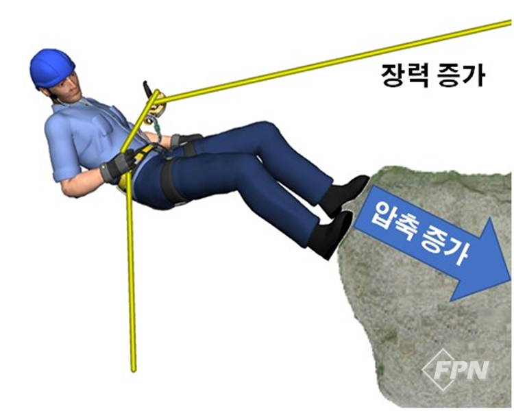 이걸 해본 적이 있는 구조대원은 누구나 알고 있다. 가장자리에 서 있는 옛날 방식의 자세는 흙으로 된 모서리가 바스러지거나 가장자리 돌이 부서지고 순간적인 추락 거리도 길어지게 해 구조대원 허리부상을 유발할 가능성이 크다. 하강자가 가장자리에 있을 때 로프엔 장력이 발생하고 다리엔 압축이 가해진다.