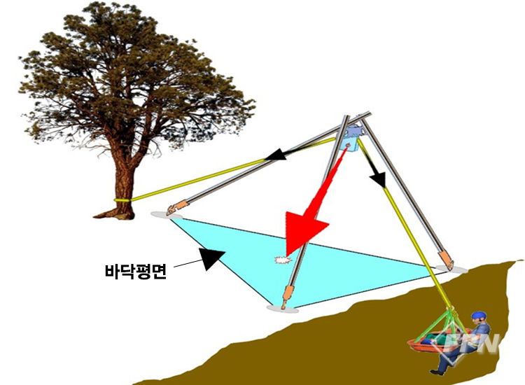 삼각대의 안정성 확보를 위해 기억해야 할 게 두 가지 있다. 하중을 들어 올리는 어떤 시스템이든 삼각대 다리 안쪽 중앙에서 작업을 수행해야 한다는 점과 모든 하중의 합력은 다리 안쪽에 있어야 한다는 점이다.