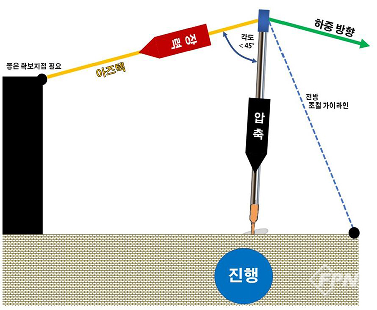 7. AHD 하중 걸기 ㆍ도르래에 로프를 통과시켜 AHD의 모든 다리를 압축 상태로 유지한다.