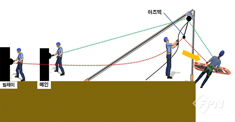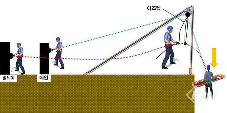 5) 가장자리 구조대원은 충격하중 완화를 위해 확보라인을 아즈텍에 연결