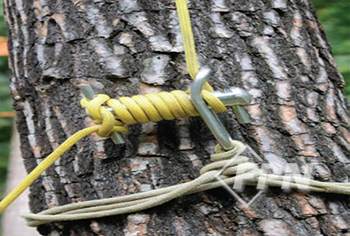 빌레이 장비를 설치하기 위한 ‘히치’ 매듭을 사용할 때 명심할 건 리깅 로프에 하중이 전달됐을 때 빌레이 장비를 고정해주는 슬링과 로프가 나무줄기를 타고 밀리면 안 된다. 이를 방지하기 위해 자연적으로 나무 밑동에 돌출된 부분을 이용한다면 슬링을 안정적으로 묶을 수 있다.