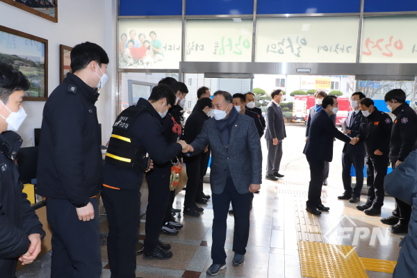 [FPN 정현희 기자] = 목포소방서(서장 남정열)는 지난 11일 설 연휴 특별경계근무에 임하는 직원을 격려하고자 더불어민주당 김원이 국회의원과 김종식 목포시장, 박창수 목포시의회 의장이 방문했다고 밝혔다.