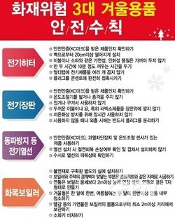 소방청 통계에 따르면 최근 5년간 계절용 기기로 인한 화재가 전국에서 1만2899건 발생했으며 그중 겨울철 3대용품 부주의 등으로 인해 4200여 건의 화재(32%)가 발생한 것으로 집계됐다.