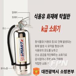 [FPN 정현희 기자] = 유성소방서(서장 황재동)는 음식물 조리ㆍ화기 취급으로 화재 발생 위험이 있는 주방시설에 대해 K급 소화기 비치를 홍보한다고 밝혔다.