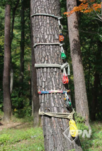 나무에 도르래 설치하기 나무를 다루는 산림작업 현장뿐 아니라 여러 산업현장에서 블록과 도르래는 다양하게 사용되고 있다. 우리는 수목을 관리하는 아보리스트이므로 필자가 강조하고 싶은 부분은 ‘리깅’ 작업이다.