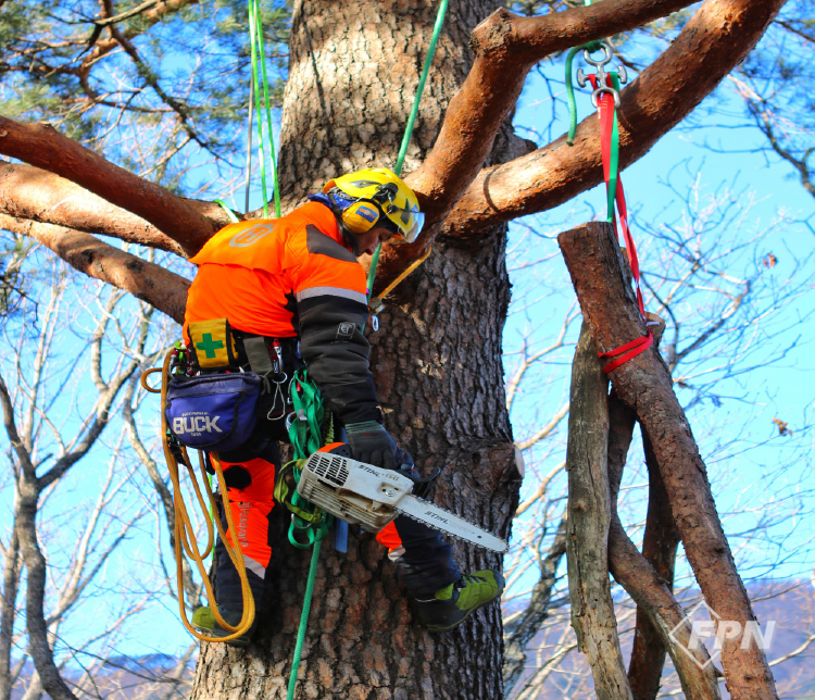 ‘Endless loop’로 연결돼 있지만 길이를 조절할 수 있는 ‘우피 슬링’은 나뭇가지나 주 줄기에 한 바퀴 감는 ‘거스 히치’를 이용해 사용할 수 있다. 이런 특징은 슬링을 묶고자 하는 나무의 직경이 달라지더라도 적절하게 길이를 조절해 사용할 수 있다. 무엇보다 중요한 점은 리깅 포인트는 반드시 ‘Cut’ 작업하는 포인트 아래에 설치한다.