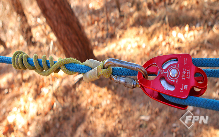 당김줄에 도르래 시스템 설치 아보리스트들에게 ‘클라이밍 히치(Climbing hitch)’는 필수 슬링이다. 리깅 작업을 위한 도르래 시스템을 구축할 수 있을뿐더러 당김줄을 사용할 때 작업 효율을 극대화할 수 있다.