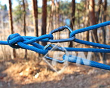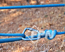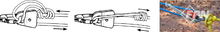혹은 두 개의 눈이 있어 더블 아이 슬링(A double-eye sling)이라 불리는 제품을 이용한다면 볼티테인 트리즈(A valdotain tresse) 히치를, 하나의 눈을 가진 싱글 아이 슬링을 이용한다면 프루직 히치나 브레이커스 히치(Blake’s hitch)를 만들자.