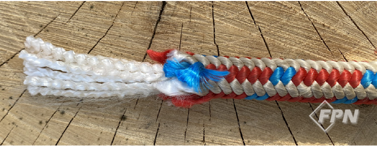 4) 구조(구성)(Construction) 로프를 구성하는 섬유재료는 로프의 성능을 지배한다. 그 외엔 로프를 만드는 직조 방식에 의해 결정된다. 섬유는 로프의 가장 작은 구성요소다. 단일 가닥의 섬유들을 함께 꼬아 실(Yarn)을 만들고 모인 실을 가닥(Strand)으로 꼬아야 한다. 그 가닥들(Strands)이 꼬이거나 가닥들을 땋으면 우리가 사용하는 로프의 모양이 나온다.