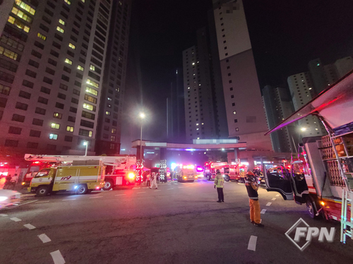 ![]() ▲ 천안시 서북구 불당동에 위치한 P 아파트 1단지 지하주차장에서 화재가 발생했다. © 천안서북소방서 제공 |