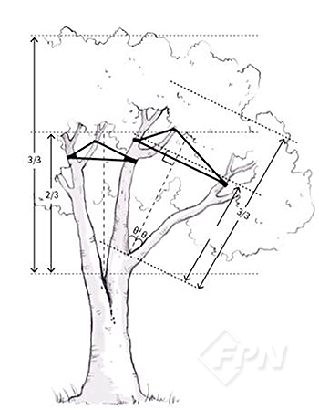 ㆍ케이블 각도 : 케이블 설치 각도는 케이블이 설치될 두 수목 조직이 이루는 각도를 양분하는 가상선에 대해 수직이 되게 한다([그림 1] 참조).