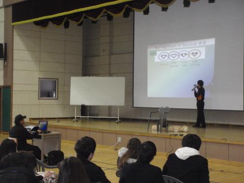 ▲ 심폐소생술 실습 전 이론 설명을 하고 있다. © 신상훈 객원기자