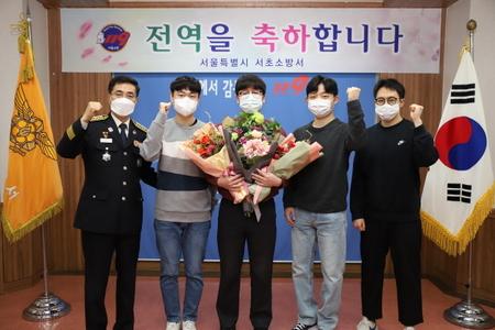 박찬호 서장은 “무엇보다 건강하게 소집해제되는 걸 진심으로 축하한다”며 “소방서에서 배우고 익힌 걸 토대로 사회에서도 국민 안전을 지키는 데 기여할 수 있길 바란다”고 전했다.