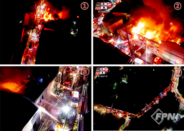 현장에서 관창이나 소화전, 고가차, 방수포 등 동원 가능한 소방력을 집중적으로 투입해 화재확산 방지와 화재진압 두 마리 토끼를 한 번에 잡아낸다. 소방차량과 관창 배치 등의 사전 포석 작업을 최우선으로 고려함을 간접적으로 느낄 수 있다.