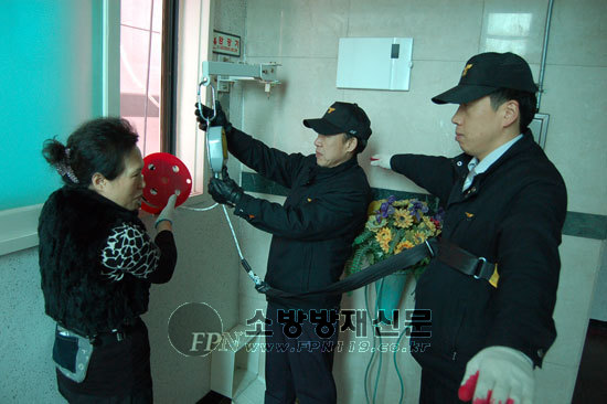 소방서 관계자는 “완강기 지지대에 고리를 걸고 로프를 밖으로 던져 바닥에 닿은 걸을 확인한 후 안전밸트를 가슴에 착용하고 하강하면 된다. 완강기에는 조속기가 있어 체중에 따라 천천히 하강하므로 두려워하지 말고 침착하게 대피해야 한다”고 말했다.