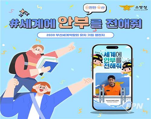 [FPN 김태윤 기자] = 소방청(청장 직무대리 남화영)은 ‘#세계에 안부를 전해줘’ 캠페인을 통해 ‘2030 부산세계박람회’ 유치를 지원한다고 18일 밝혔다.
