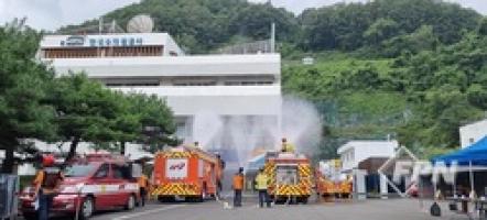 이날 소방서는 합천댐 폭탄 테러에 따른 대응 종합훈련을 진행했다. 훈련에는 소방서를 비롯한 9개 기관ㆍ단체가 참여했다.