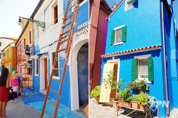 부라노섬에는 알록달록한 집들이 동화 나라처럼 옹기종기 모여 있다. 이는 색을 알록달록하게 배합해 고기잡이배들을 칠하는 데서 유래했다.