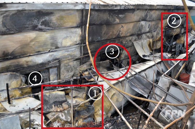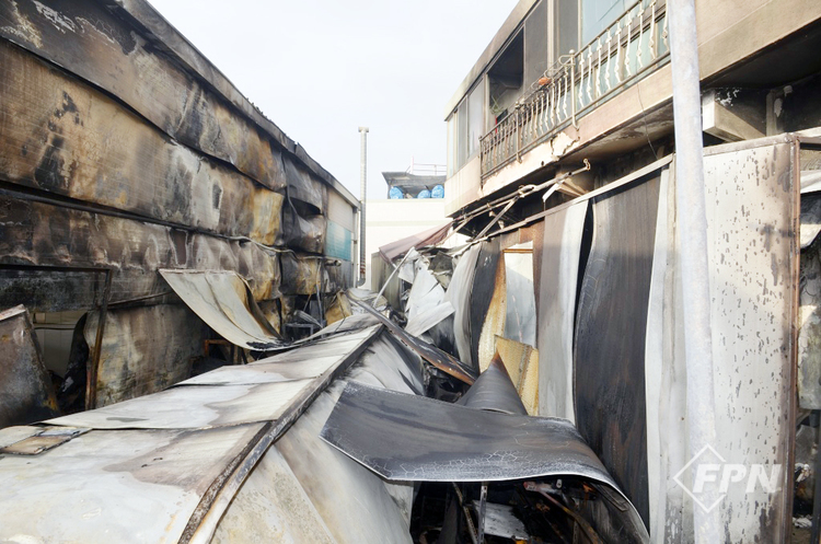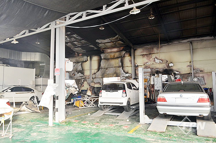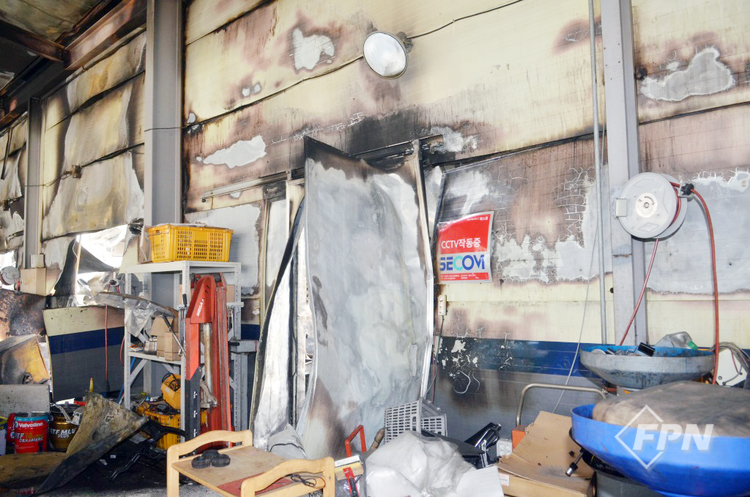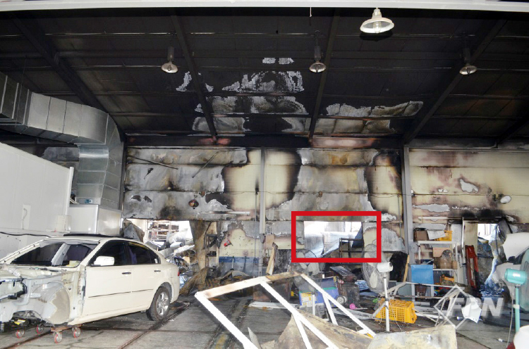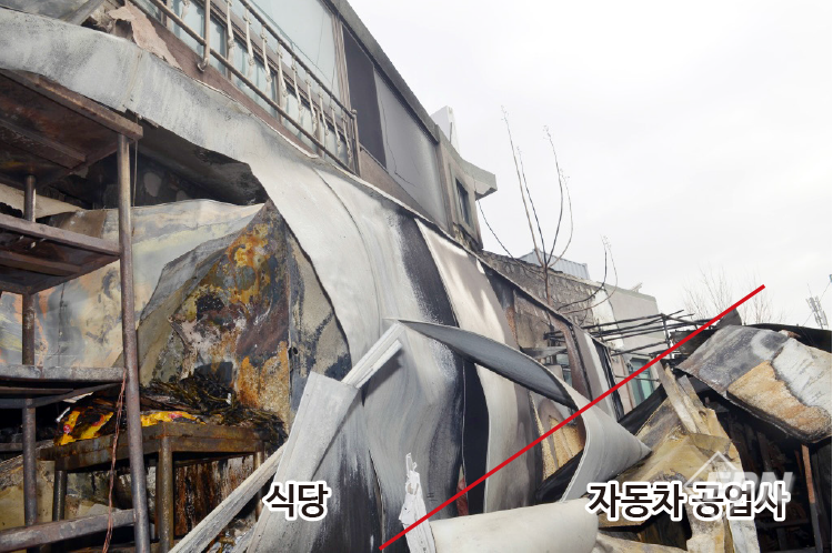 식당과 자동차 공업사 중간지점의 소훼 상태가 심하게 나타나 있으며 샌드위치 패널은 식당이나 자동차 공업사가 비슷한 연소 형태로 잔류했다. 자동차 공업사 쪽 연소한 부분에는 페인트 창고가 있었고 연소 형태가 심하게 식별됐다.