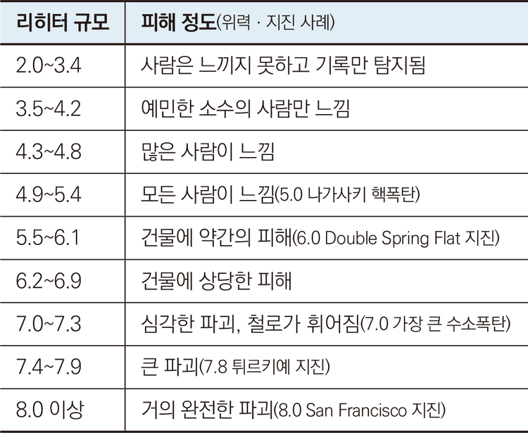붉은색 점으로 표시된 곳이 지진 규모 7.8과 7.5 강진이 발생한 곳이다. 검은색 점으로 표시된 건 규모 4~6.7의 여진이 발생한 곳이다. 사진만 봐도 지진의 규모를 짐작할 수 있었다.