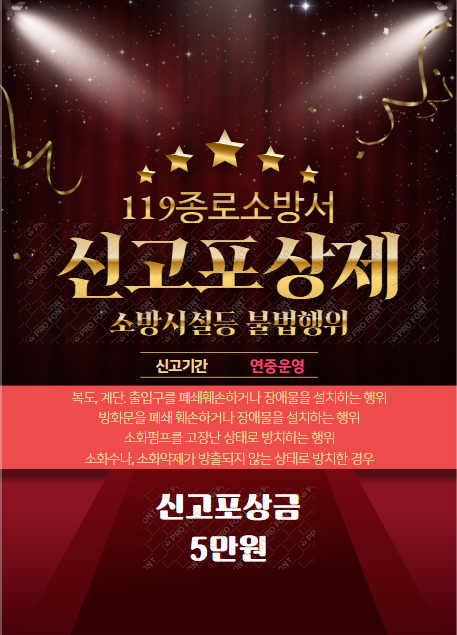 - 종로소방서, 소방시설 등 불법행위 신고 포상제 연중 운영