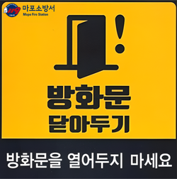 [FPN 정재우 기자] = 마포소방서(서장 서영배)는 ‘불조심 강조의 달’(11월)을 맞아 겨울철 화재안전대책의 일환으로 ‘공동주택 방화문 닫기’를 홍보한다고 14일 밝혔다.