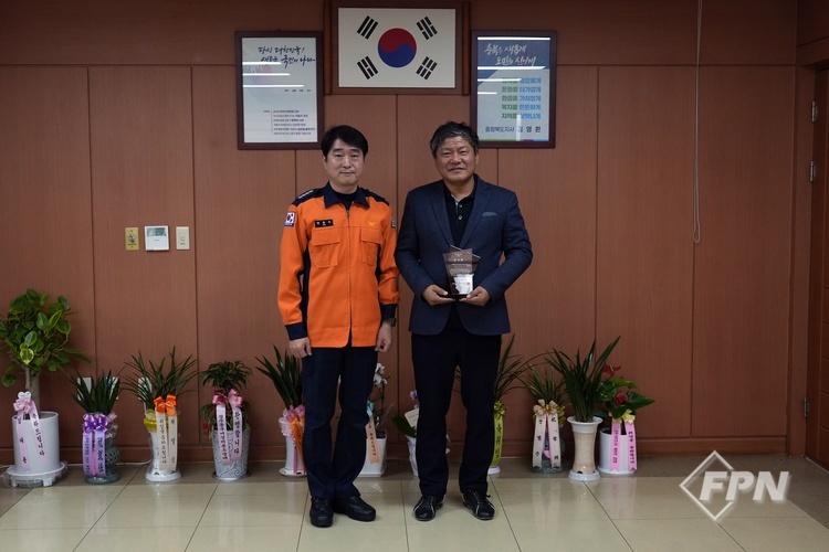 [FPN 정재우 기자] = 청주동부소방서(서장 한종우)는 22일 오전 서장실에서 화재진압 유공자에게 감사패를 수여했다고 밝혔다.