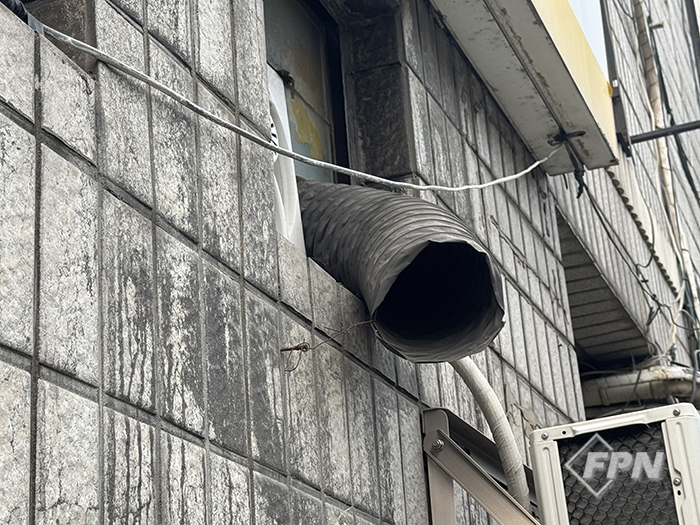 ![]() ▲ 한 가게에 가연성 재질의 타포린 주름 덕트가 설치돼 있다. © FPN |