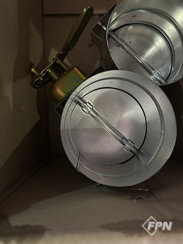 ![]() ▲ 주방 환기 시설 등에 사용되는 원형 덕트용 방화댐퍼 © 국립소방연구원 제공 |