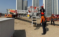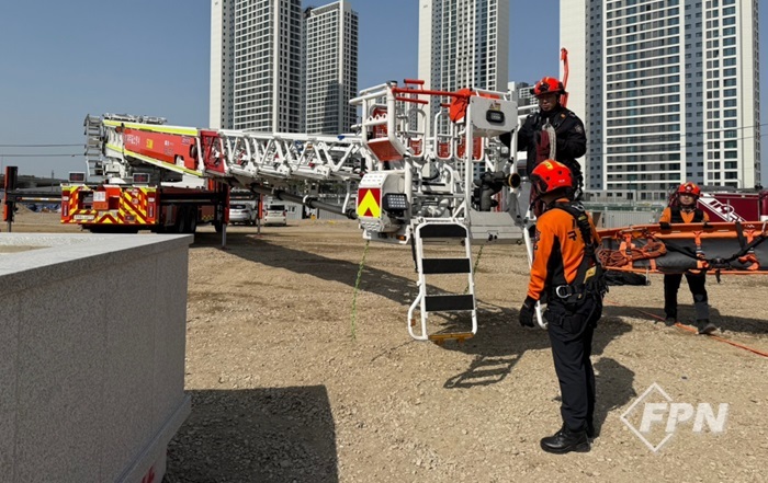 주요 훈련 내용은 ▲현장안전점검(지반 확인) ▲팀별 역할 분담 및 장비 휴대 ▲가상 구조대상자 구조(사다리 전개 등) ▲고가사다리차 이용 안전지대 이동 ▲구급대 인계 등이다.