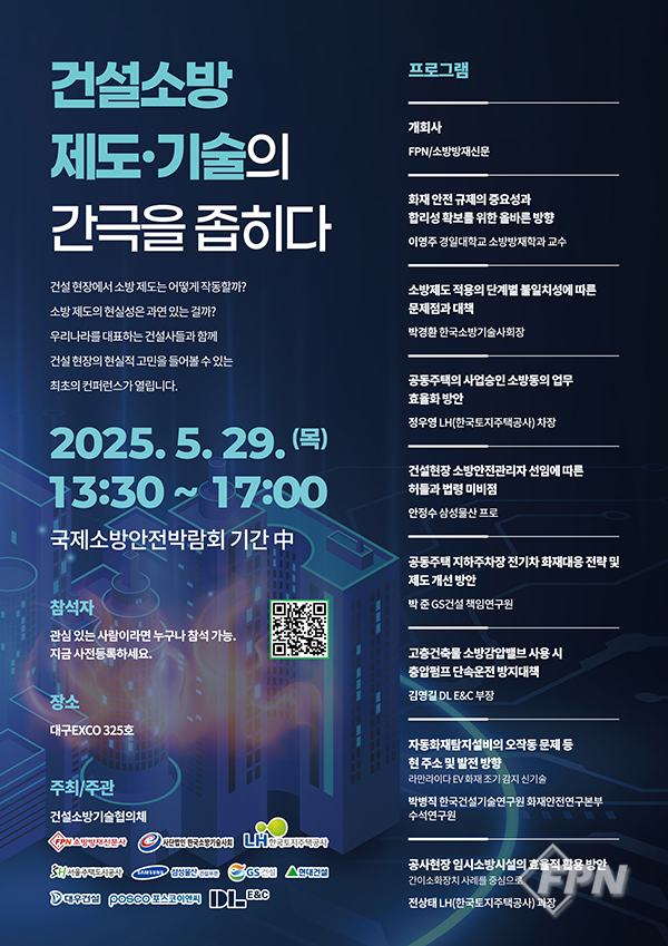 이번 행사는 ‘2025년 국제소방안전박람회’ 기간에 맞춰 진행된다. 대형 건설사 소방부서 담당자를 비롯해 소방기술인과 화재안전 분야 전문가, 소방공무원 등 200여 명이 참석할 예정이다.