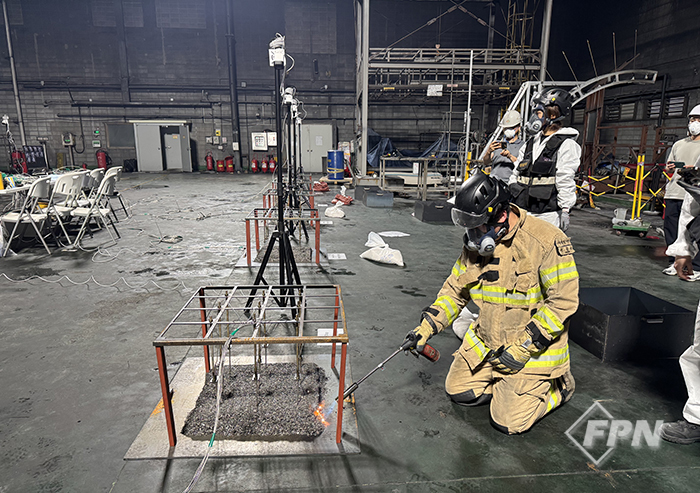 실험에 쓰인 가연물은 마그네슘 합금칩과 분말이다. 이는 국제표준(ISO 7165)의 금속 화재 적응 소화기 성능 요구 사항과 시험 방법 등을 준용한 결과다.
