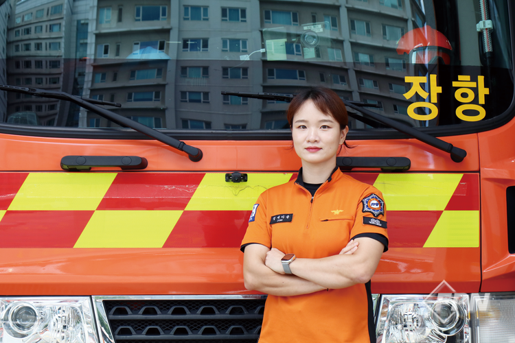 “불이 난 스포츠센터 내부에 들어갔는데 짙은 연기 때문에 한 치 앞도 안 보이는 거예요. 부장님 신발을 더듬거리며 기어들어 가야만 했죠. 열기도 가득해 처음으로 두려움을 느꼈던 순간이었습니다. 마지막 현장 확인을 위해 10층 건물을 오르내리는데 정말 숨이 턱 끝까지 차오르더라고요. ‘진짜 소방관이 됐구나!’란 생각이 든 현장이었습니다”