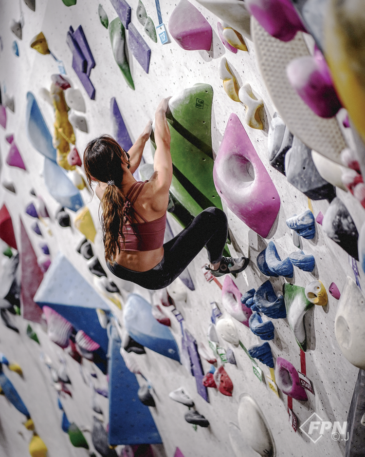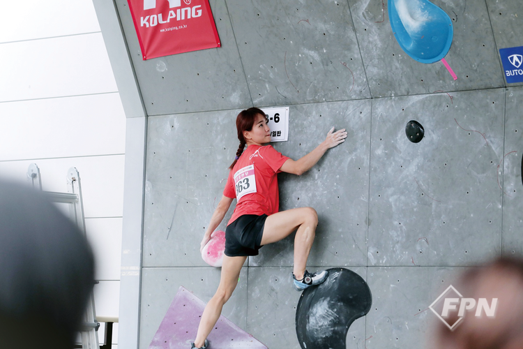 볼더링은 줄을 매달지 않고 4~5m 내외의 낮은 인공 암벽에 퍼즐처럼 꼬아진 고난도의 홀드를 오르는 종목이다. 정새다솜 소방사의 주 종목이었다.