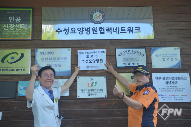 [FPN 정재우 기자] = 수성소방서(서장 이용수)는 29일 ‘2025년 관계인 소방훈련 경진대회’에서 최우수상을 수상한 수성요양병원을 대상으로 현판식을 개최했다고 밝혔다.