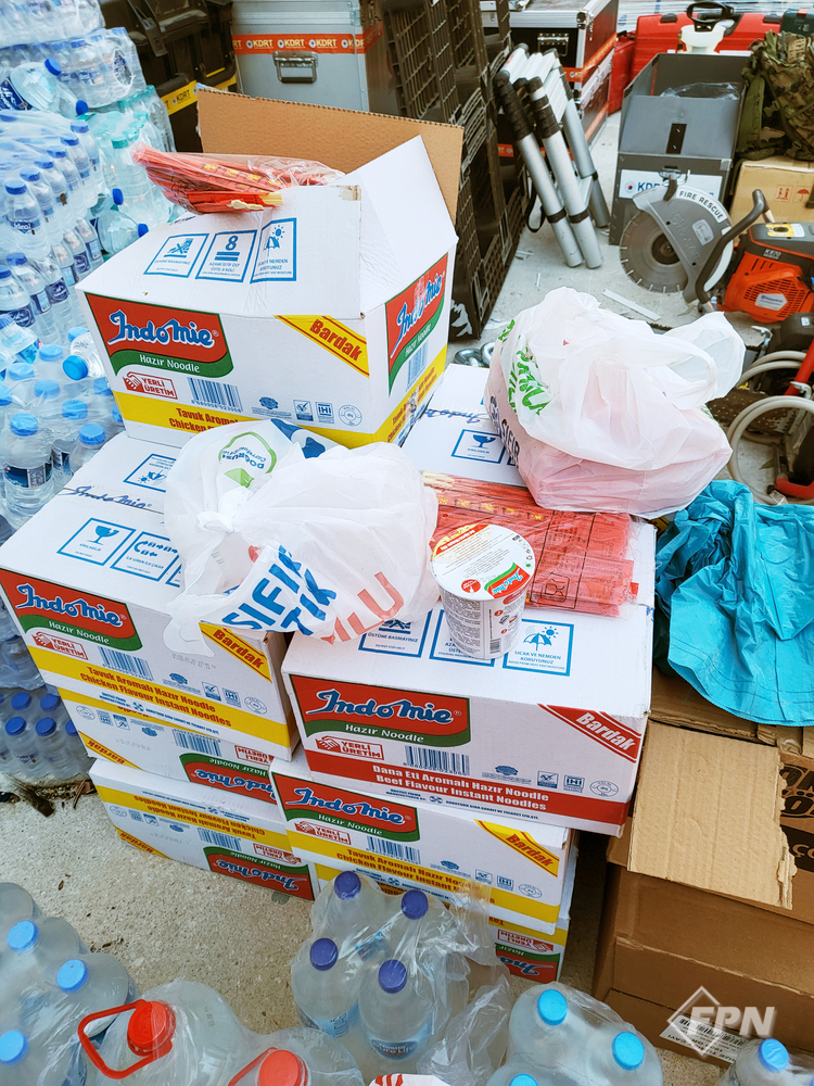 컵라면이 왔다는 소식에 대원들은 환호했다. 그리고 우리가 여기 있다는 걸 잊지 않은 튀르키예 정부에 감사했다. 빵은 바게트와 난이었는데 큰 비닐봉지에 넣어 줬다. 비닐이 찢어진 빵들은 위생 문제로 폐기했다.