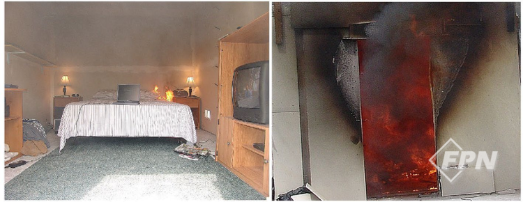 점화가 시작되자 방 안의 모든 가연물이 불에 타기 시작했다. 침구, 매트리스, 박스 스프링, 상자, 의류, 협탁, 책상, 거실 장 등이 연소하면서 플래시오버가 발생했다.