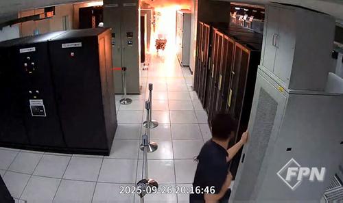 이날 공개된 영상에는 해당 전산실의 무정전ㆍ전원장치(UPS) 부근에서 시뻘건 불꽃이 솟구치더니 연기로 뒤덮이는 모습이 담겼다. 화재에 놀란 작업자들은 전산실을 뼈져 나갔고 안전모를 착용한 작업자들이 불이 난 리튬이온 배터리 상태를 확인하는 모습이 포착됐다.